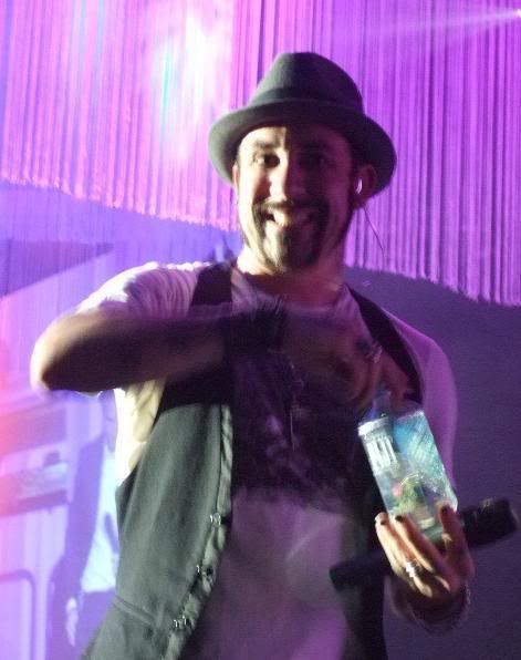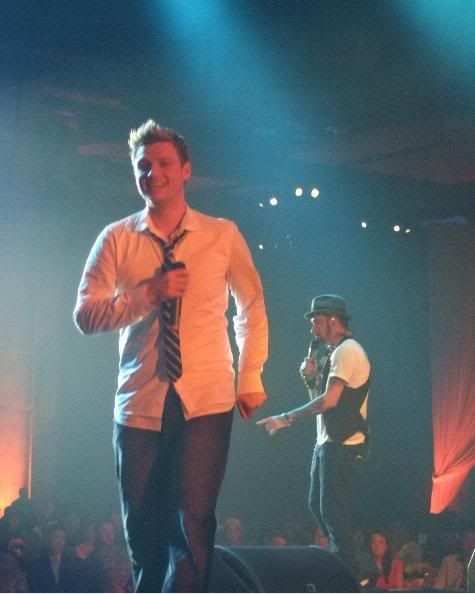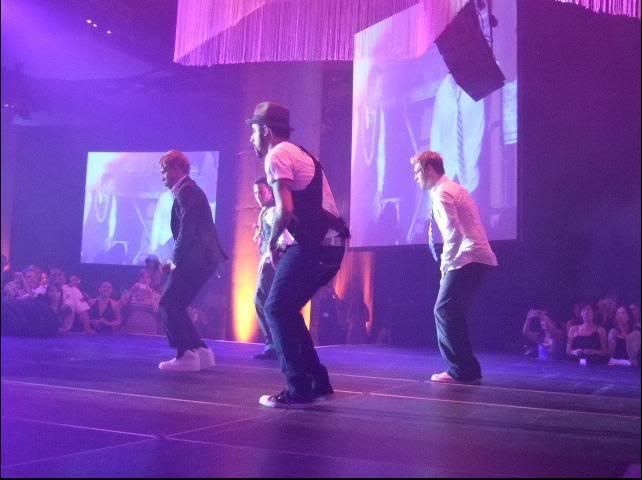 Antes de o show tradicional começar, nós fomos convidadas a ficarem um dos dois lados do palco, próximo à banda. Então, durante todo o show, nós só vimos as costas deles… Mas ainda assim curtimos muito o show! Eles cantaram por volta de 45 minutos (E o Baylee também dançou o tempo todo! Uma gracinha!) Os meninos dançaram "Any Other Way" e "Everybody". E eles fizeram um furdunço quando cantaram "Larger Than Life". Eles realmente conseguiram transformar aquele jantar em um show. Muitas pessoas cantaram com eles e correram para a frente do palco para tocá-los. Eles realmente fizeram um ótimo trabalho.